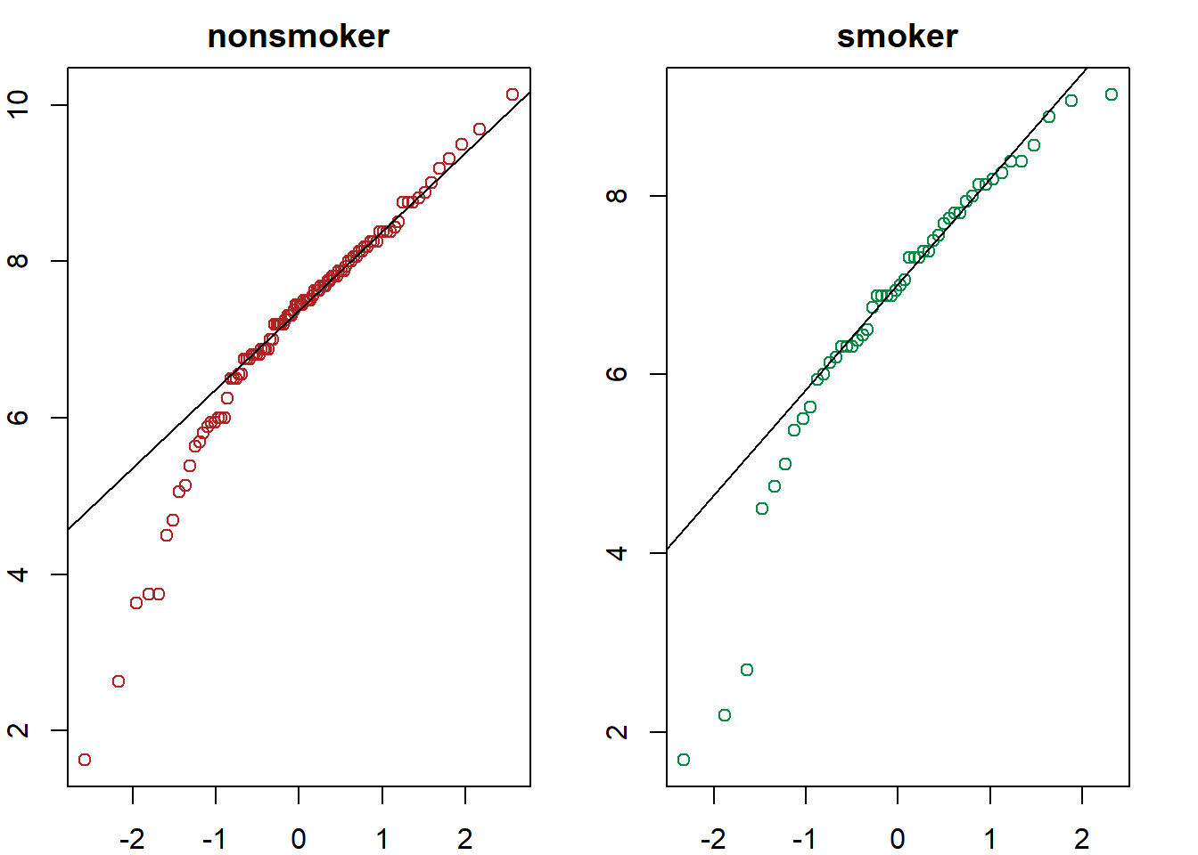Los gráficos qqnorm indican que las muestras se asemejan a los esperado en una población normal y los test de \(Saphiro-Wilk\) no muestran evidencias para descartar que las muestras procedan poblaciones sean normales (para un \(\alpha\) de \(0.05\)).