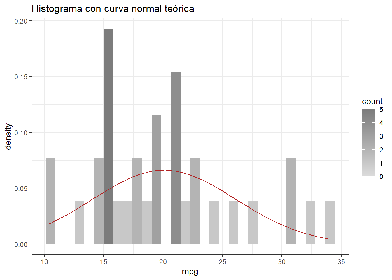 Consiste en representar los datos mediante un histograma y superponer la curva de una distribución normal con la misma media y desviación estándar que muestran los datos.